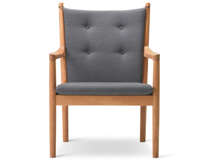 The centerpiece of Mogensen and Wegner’s stand was the living room, in which they presented a new vision for lightweight and functional furniture. In 1974 Wegner redesigned the 1788 easy chair to arrive at the current design. The design is bare from every angle – even the cushions are attached with visible straps. The exposed wooden construction is typical for both Mogensen and Wegner, and in the Spoke-back Collection they continued their work with the Windsor chair methodology. The lightweight wooden design with interchangeable cushions is ideal for both exclusive public spaces and private homes.