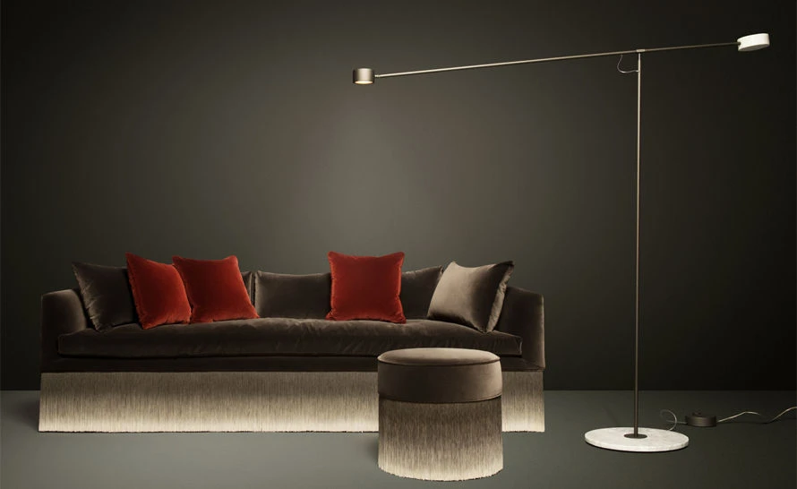 An elegant and comfortable pouf dressed in heart-warming velvet, softly floating on long sensuous fringes that decorate and enhance it, producing a fresh breeze of lightness all around the room.