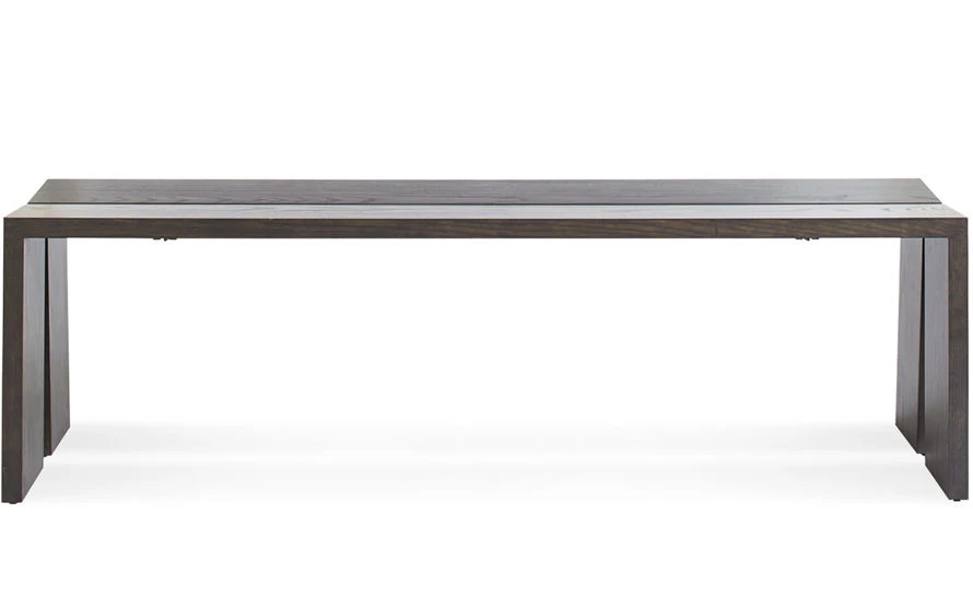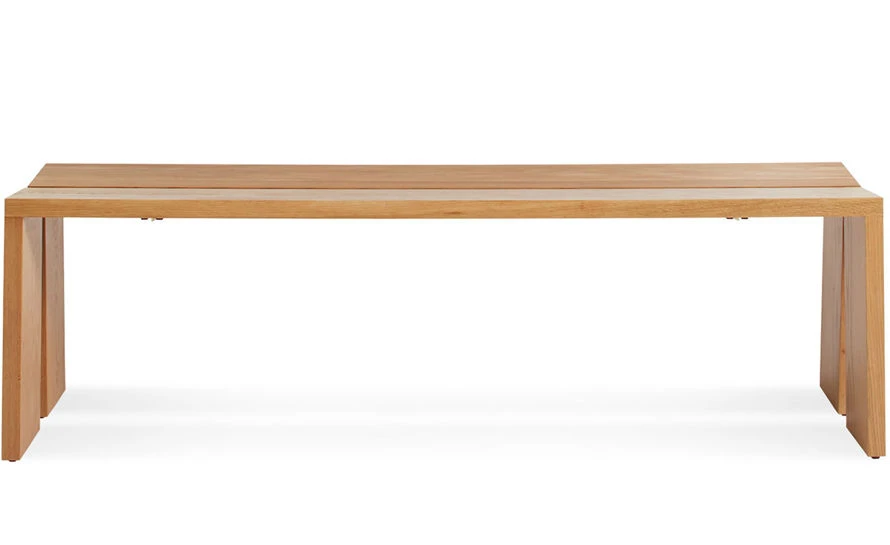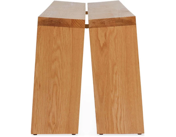 Two angled solid wood planes are unified by brass brackets to create an unexpectedly comfortable seat. The uncomplicated form is suitable for use in any room (entry way, dining room, bedroom) or contract setting. Offered in your choice of rift sawn solid white oak with brass-colored steel brackets or solid walnut with brass-colored steel brackets. Includes adjustable glides for leveling. Ships fully assembled.