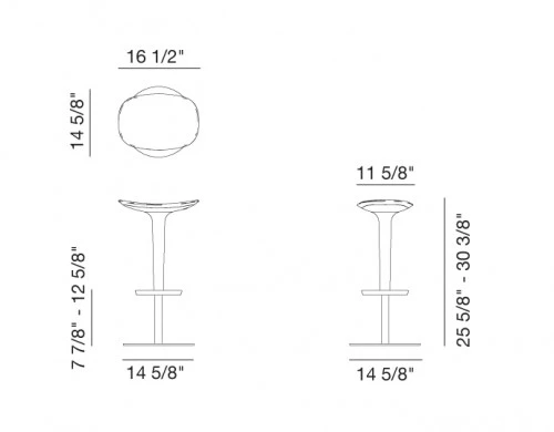seat: 11.6″ d | 16.5″ w | 25.6″ – 30.4″ h | base: 14.6″ dia.