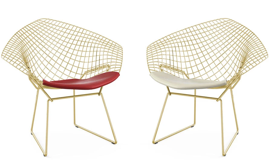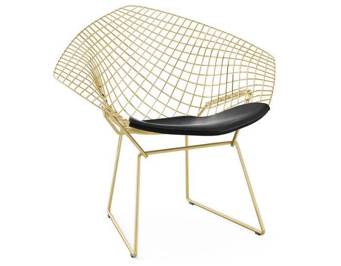 bertoia gold plated small diamond chair with seat cushion