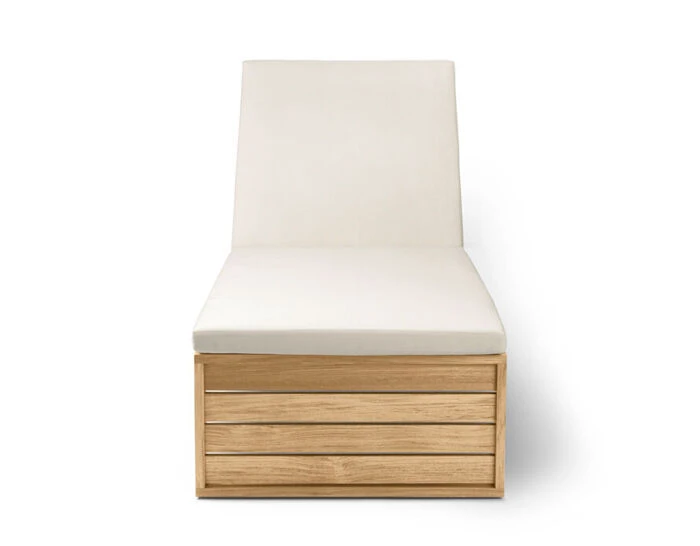The Indoor-Outdoor series consists of a lounge chair, a small table whose height matches that of the lounge chair, a dining table, a dining chair, a two-seater lounge sofa, a swing sofa, and a sunbed – all inspired by the Cubist idiom, which has proven its enduring visual appeal. Carl Hansen & Søn is now relaunching Kjær’s classic series in solid teak, which withstands changeable weather conditions, patinates beautifully, and lends itself to both outdoor and indoor use.