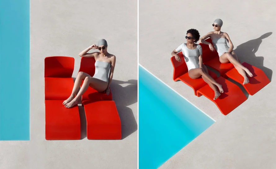 The Clip collection, one of Diabla’s most ingenious collections, as it allows you to create a whole range of different furniture with just two elements. For example, by adding the side table to this outdoor armchair as a footrest, it becomes a lounger. And if you alternate several of these two pieces in a row, you’ll get a sofa with however many seats you want. Behind its appearance of spontaneous strokes is a very carefully studied design.