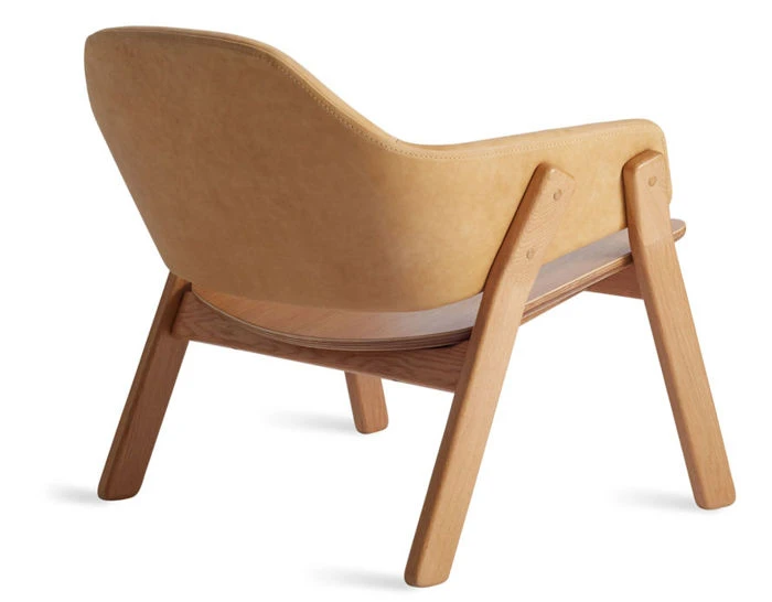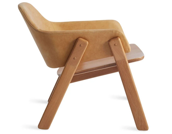 Sturdy yet elegant and comfortable without being overly plush, Clutch’s rounded edges and curved back wrap around to provide the perfect resting spot for arms. Also available as a dining chair size or upholstered in fabric.