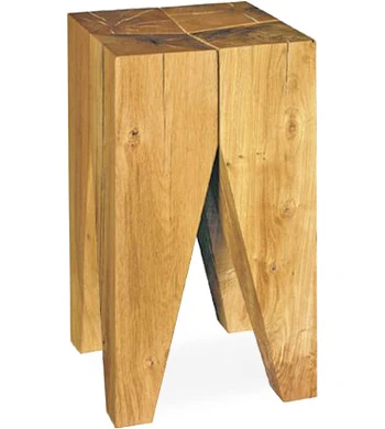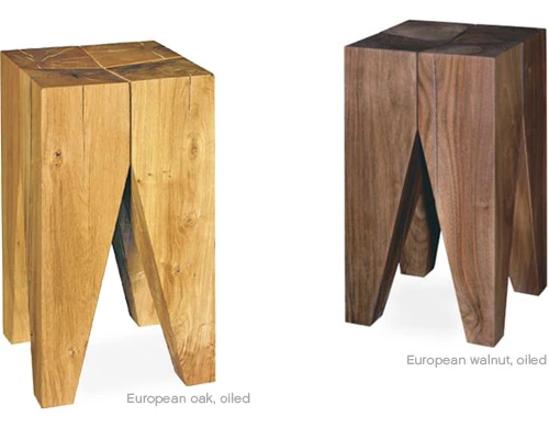 Considered a design classic, the st04 backenzahn (which means ‘molar’) has become an identifying icon for e15 and part of several permanent exhibitions in museums. With its four identical legs made of solid wood the stool gives a strong impression. the legs taper downward with two deliberate incisions. The gaps between the legs suggest that all four parts are still clearly recognizable, and the slightly concave seat provides sitting comfort while the flat top can be used as a side table or seat.