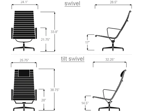 tilt/swivel: 25.75″ w | 32.25″ d | 38.75″ h | seat: 14.5″ h | arms: 23.5″ h