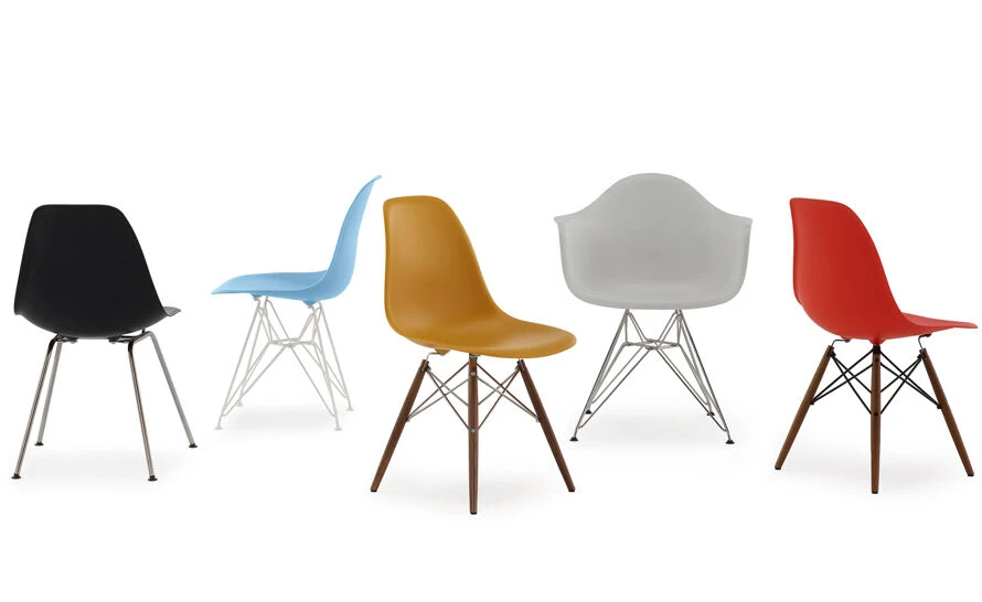 New materials, especially those that held promise for doing more with less, fascinated the Eameses thoughout their careers. Plastic was no exception. they saw in it the chance to form organic seat shells that conform to the body’s shape. The Eameses adapted manufacturing techniques developed during World War II to mass-produce this design in side and armchair versions. As they typically did, the Eameses required that materials be expressed honestly and unselfconsciously so these were the first one-piece plastic chairs offered without upholstery or covering. Their enduring design and quality construction make them durable performers in many environments.