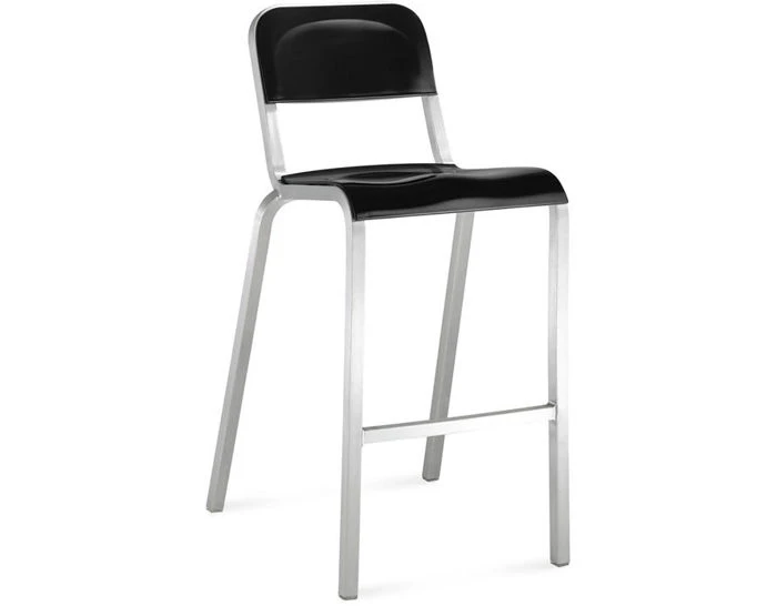 The 1951 stool is an update of an original Emeco chair made for Navy hospitals from 1951. The chairs and stools are offered with durable ABS seat & back in various colors and a brushed/anodized frame that stacks six high. Suitable for use indoors or out.