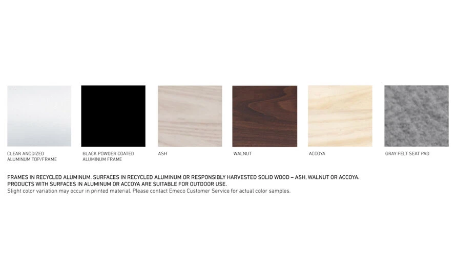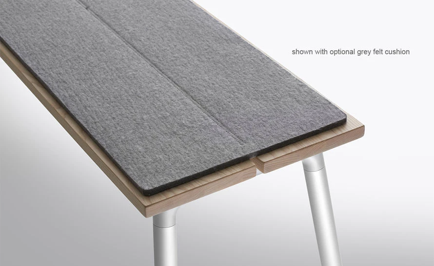 Run bench is offered in either a 3-seat or 4-seat option. The collection features a recycled aluminum frame with either a clear anodized or black powder-coated finish. The tops can be specified in recycled aluminum or responsibly harvested wood – ash, accoya or walnut. Aluminum and Accoya options are suitable for outdoor use.