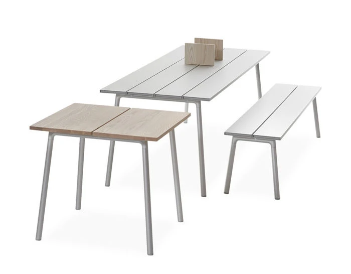 Run is a collection of tables, benches and shelves by Sam Hecht and Kim Colin, designers of the simple and no-nonsense. Run effortlessly finds balance in both indoor and outdoor landscapes suited for meeting, eating, learning, sharing and working. Made of responsibly selected, sustainable materials and engineered to last, Run is right for a multitude of uses at home, for hospitality and in the workplace.