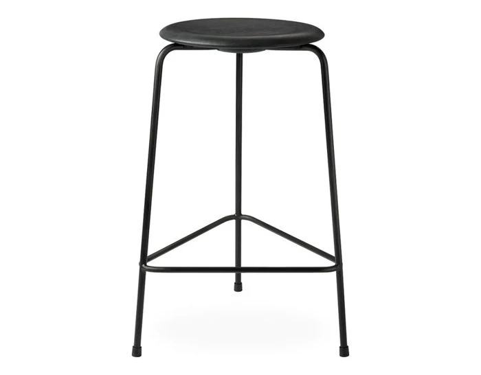 Fritz Hansen has introduced a collection of furniture accessories that will brighten up the home in a functional yet stylish way. Meet an Arne Jacobsen favorite in the shape of a sophisticated counter stool. The Danish designer and architect Arne Jacobsen first introduced the three-legged Dot stool back in the 1950s alongside his first stacking chair the Ant. Dot as a three-legged counter stool is perfect for a spacious open kitchen or the standing desk at home. The Monochrome black version has a contemporary dusty matte appearance and the base in black powder coated steel compliments the silky-smooth seat in Intense leather.