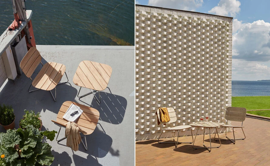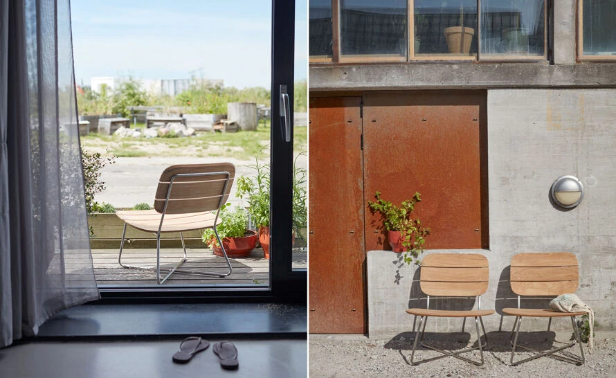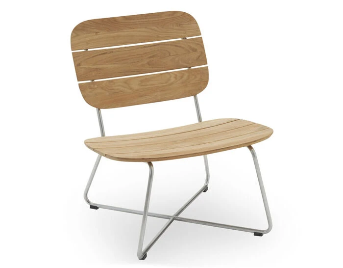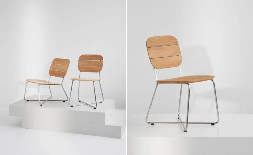 Inspired by the shape of a lily pad, Lilium is an outdoor furniture series that is light and sturdy at the same time. Light, with its slender X-shaped frame in stainless steel, sturdy, with its wooden planks that greet you with a contemporary and welcoming gesture. The Lilium lounge chair offers a laid-back break, where the backrest gives slightly when you sit down. With its charming width and curvilinear seat the slender steel frame is strong, despite its light look, crafted as it is in stainless steel, ideal for outdoor living.