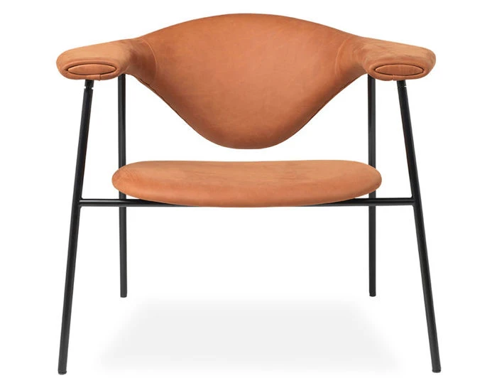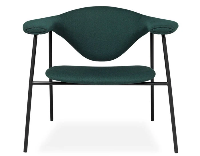 With GamFratesi’s Masculo collection, we see the emergence of a new, potentially classic furniture series from Gubi. The Masculo 4-leg lounge chair features a black powder-coat metal base. The chair can be upholstered in a variety of options. Plastic glides included, felt glides available on request. Also offered with different base options as well as a dining version.