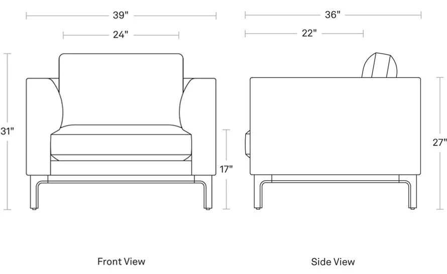 39″ w | 31″ h | 36″ d | seat: 17″ h | 22″ d | 24″ w