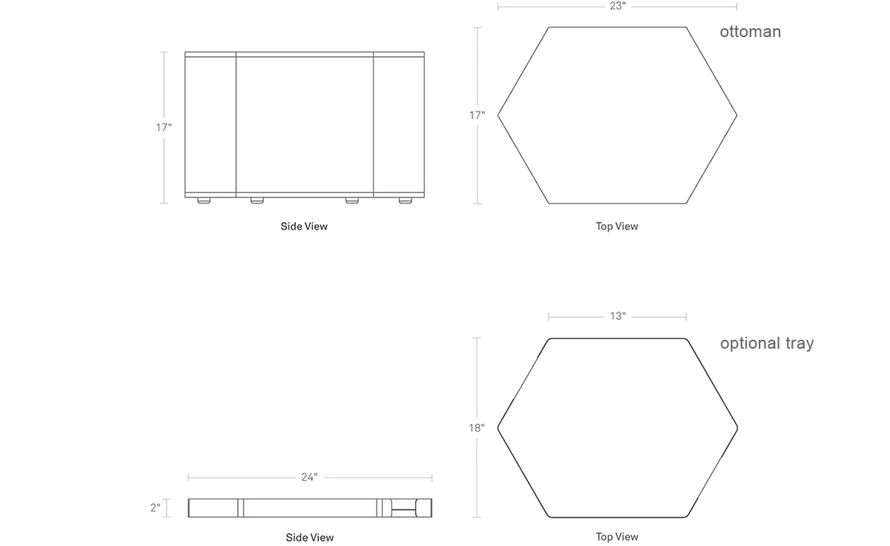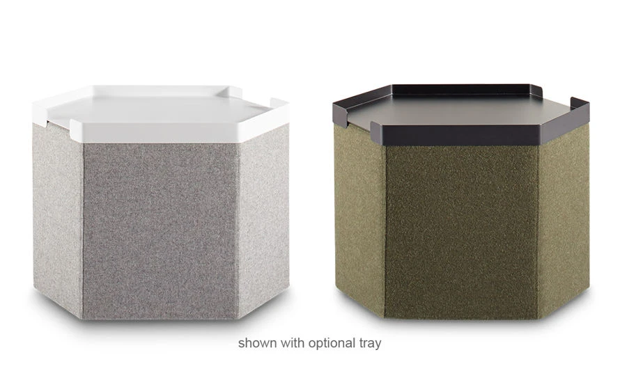 What the Hecks? A six-sided solution, of course. Group the Hecks ottoman to make a honeycomb of seating possibilities for your home or hive. Hecks can also be capped with the powder-coated steel Hecks Tray (available soon) to provide a more stable and spill-friendly surface.