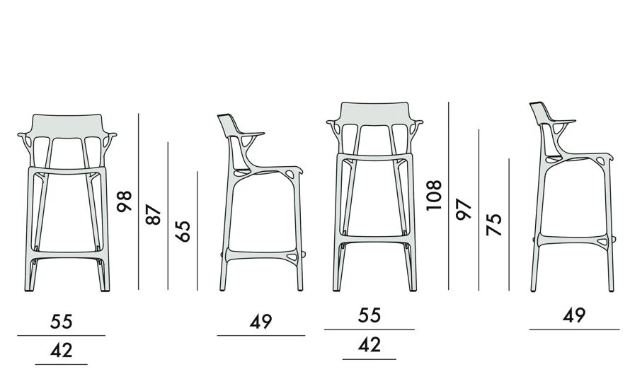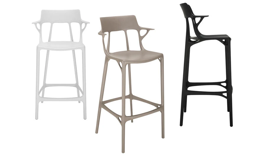 A.I. is the first chair designed and conceived by artificial intelligence. Born in response to input received from the designer (Philipe Starck) and from the company (Kartell). Specifically, creative thinking and artificial intelligence have merged to develop a chair model created using an algorithm that respects the original brief – a comfortable seat that has the structural strength and solidity requirements to ensure certification and respect aesthetic standards of simplicity and clean lines.