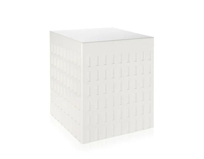 The EUR stool by Fabio Novembre is a cube printed with shapes and geometries inspired, to scale, by Italian rationalist architecture of the 1930s and 40s. The stool can be multi-purposed as a seat or support and fits into a variety of locations and styles. Just like the buildings of this period, the stool transcends time and becomes part of the Kartell lifestyle.