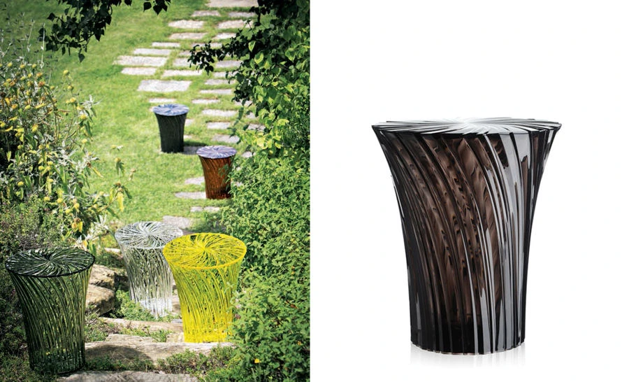 Tokujin Yoshioka’s new Sparkle stool and table collection are as striking as a brilliant ray of sunlight. The plastic’s unique pleating (both inside and out) is reflected in the end result: two new jewels for the home, that look like precious gems… diamonds or sapphires, emeralds, topaz or rubies, depending on the color chosen. Sparkle can also be used outdoors and is scratch and impact-resistant.