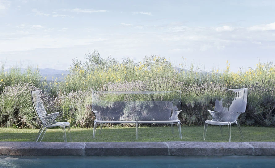 The Uncle collection is the revolutionary single mold transparent polycarbonate series created by Philippe Starck. The collection includes the daring Uncle Jack bench and the attractive Uncle Jim armchair. Reminiscent of Uncle Jack’s sinuous lines, Uncle Jim also lends itself to a broad range of furnishing needs. Suitable for the indoors or outdoors and offered in a choice of subtle shades.