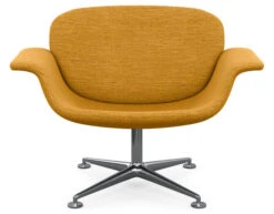 The KN low-back lounge chair has a curved silhouette and aluminum base. Its balanced proportions deliver a compact footprint and inviting form ideal for modern living, meeting and community spaces. It features a low back 360° degree swivel lounge chair equipped with a return to center system and suspension mechanism that enhances comfort and makes getting in and out easy: the chair lowers slightly when you sit and raises when you stand.