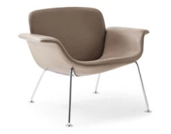 The KN04 is a compact lounge chair gracefully supported by 4 metal legs that navigates seamlessly between residential and workplace applications. KN has a sophisticated spirit that looks to the future, while at the same time paying tribute to the great designs of the past. The collection is available with a polished chrome, charcoal or black base as well as a selected range of fabric or leather.