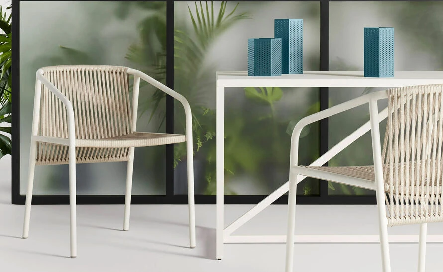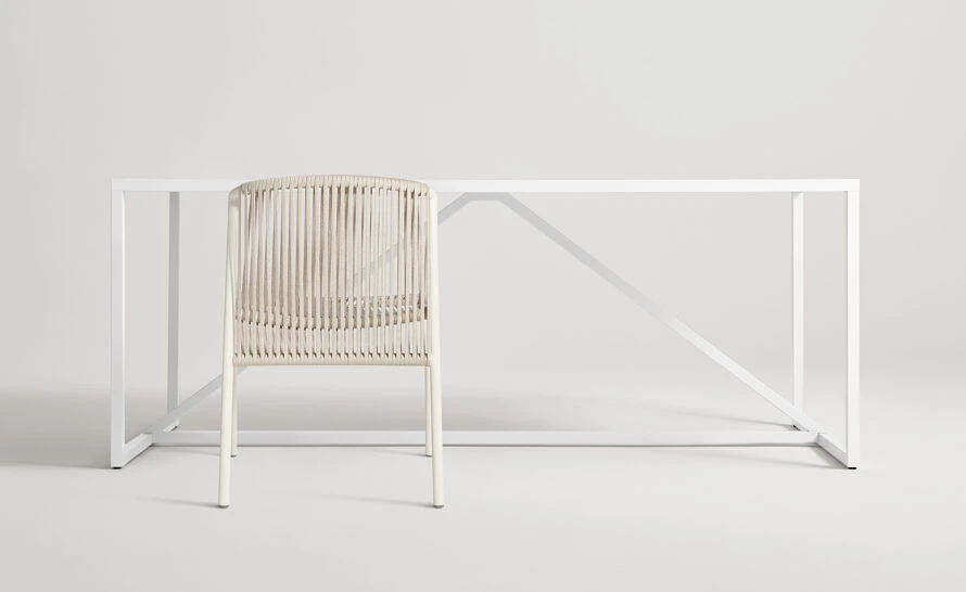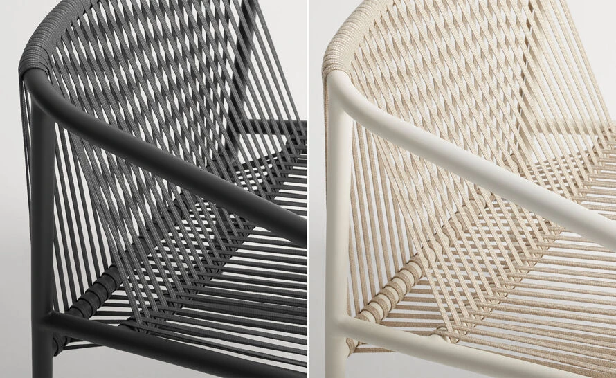 Nature is holding a viewing party and you are invited. No meditation app needed. All-weather rope weaves around a tubular aluminum frame forming an architectural silhouette that suspends you in serenity. Fulfills your hammock dreams without the need for trees. Pairs well with flip-flops, French beaches and Sunday mornings.