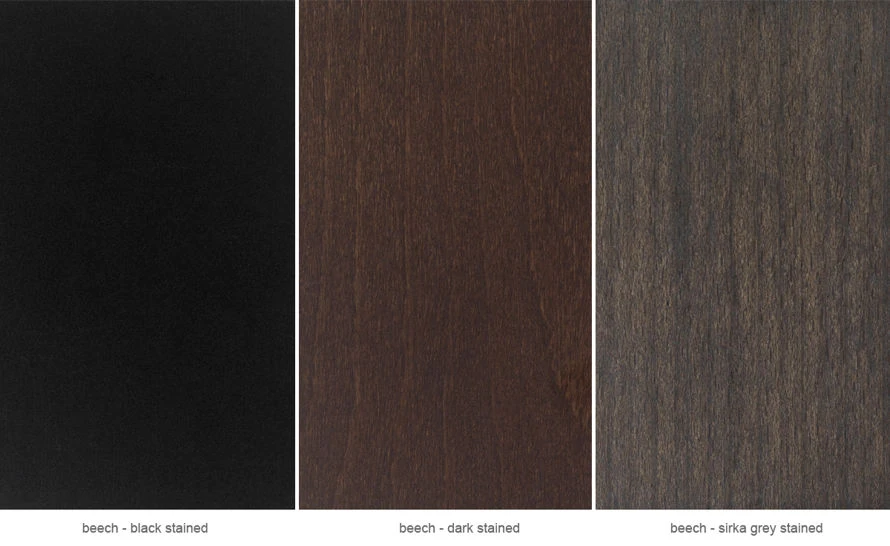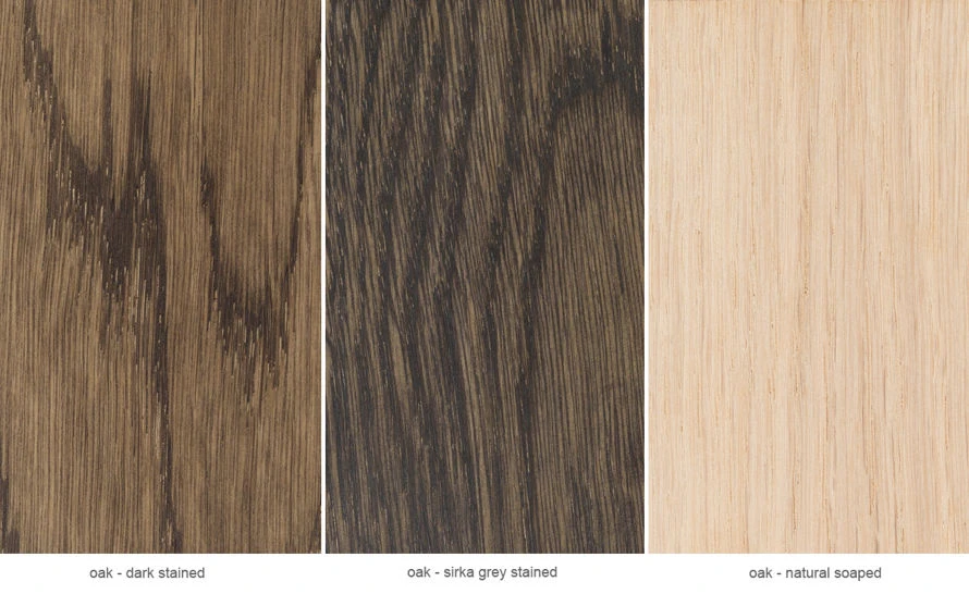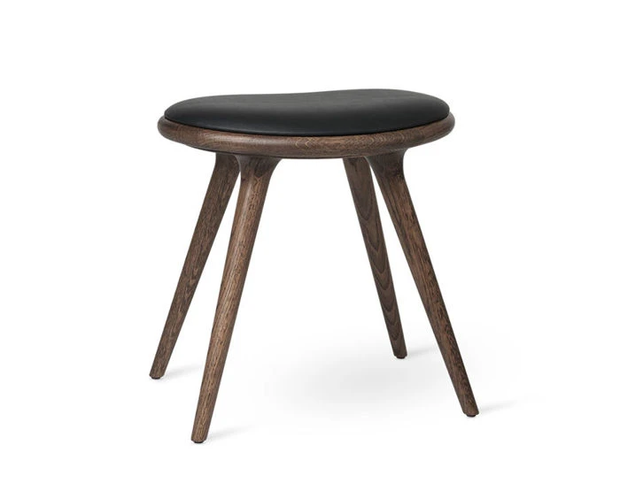 The low stool is offered in a variety of stain options in your choice of beech or oak wood. All options except for natural soaped oak include a black leather seat. Soaped oak includes natural tanned leather seat.