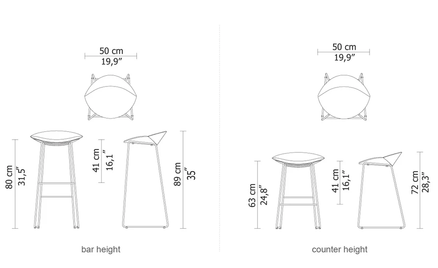 counter height: 19.9″ w | 28.3″ h | seat: 24.8″ h