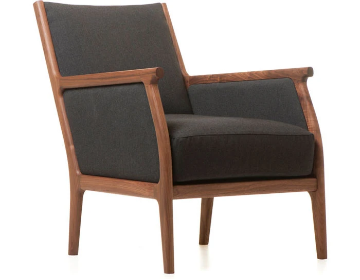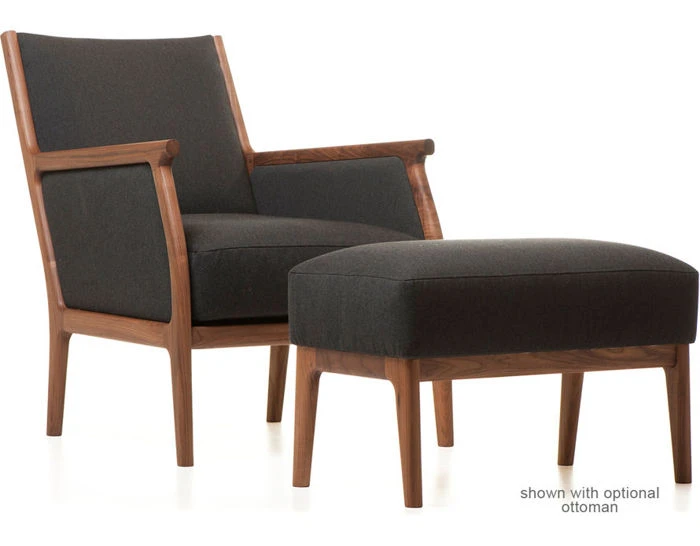 Available in American black walnut, American white oak, or European Ash in a range of finishes, and a range of fabric and leather options. Ottoman offered separately.