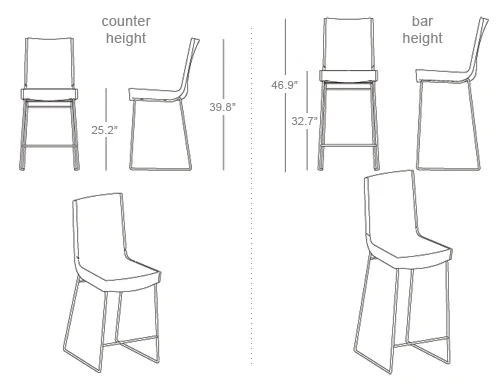 Jim stools are available with a matte chrome round sled base in your choice of bar or counter height.