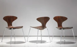 Referencing the values of forward-thinking craftsmanship and Scandinavian materiality, the Cover Side Chair is an elegant perspective on the timeless wooden chair. With its curved backrest that folds elegantly around its back legs and ties the design together, the Cover Side Chair explores the possibilities of veneer, paired with a deep comfort, modern expression and sturdy base in solid wood. The design is stackable and features a water-based lacquer.