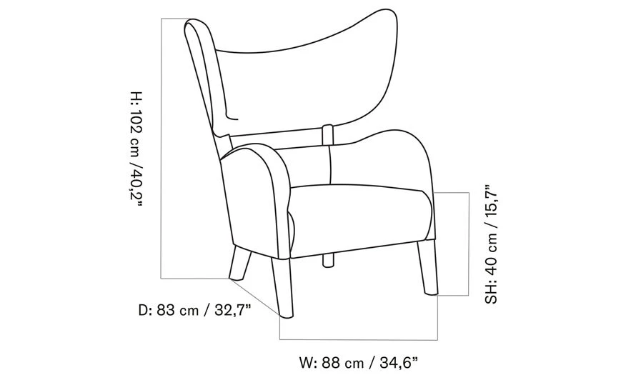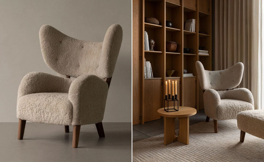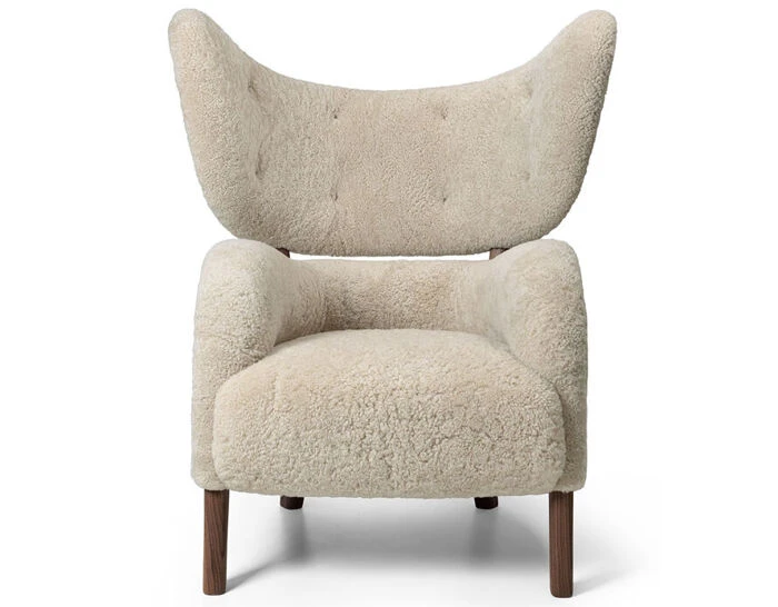 Flemming Lassen’s iconic armchair was originally only made in a single edition. The forward-looking armchair was exhibited at The Copenhagen Cabinetmakers’ Guild Competition in 1938. Upon launch it received much praise for its sculptural form with distinctive wings, yet its complex two-part silhouette made it unsuitable for mass production until the advent of modern techniques. It was relaunched in connection with the chair’s 80th anniversary and now it is also available in a walnut version. Its lumbar supportive, rounded, angled seat and extended backrest cocoon the sitter in comfort. Wooden legs and expert upholstery complete the design. A optional corresponding footrest adds to the sense of ease. Said to be Lassen’s favorite chair, it stood at the designer’s home until his death in 1984.