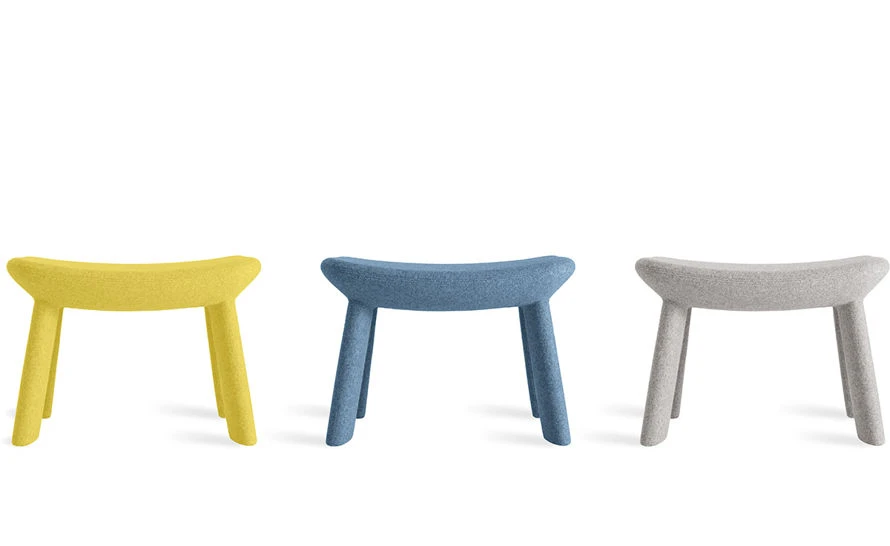 Completely upholstered from top to bottom, the Neat ottoman is an endearing and robust combination of a foam and bent ply seat and back, metal legs, a dash of footie pajamas, and a pinch of Muppet. As friendly to the posterior as is it to the eyes, Neat is one darn comfortable situation. Lounge chair & Dining chair also available.