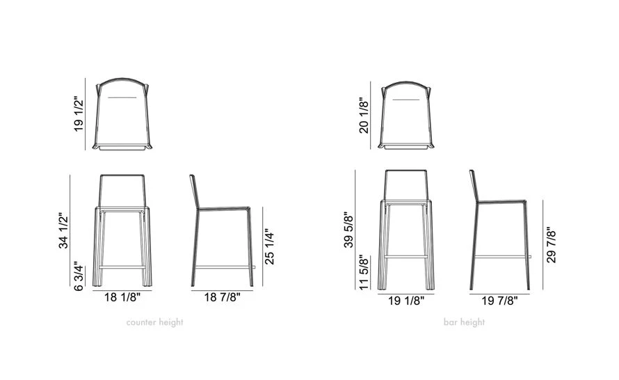 counter height: 18.1″ w | 34.5″ h | 18.9″ d | seat: 24.25″ h