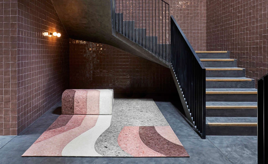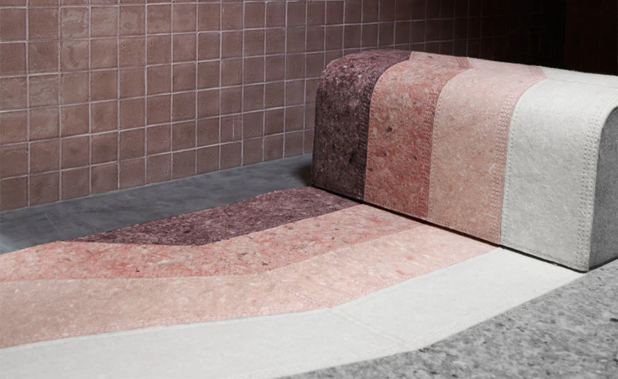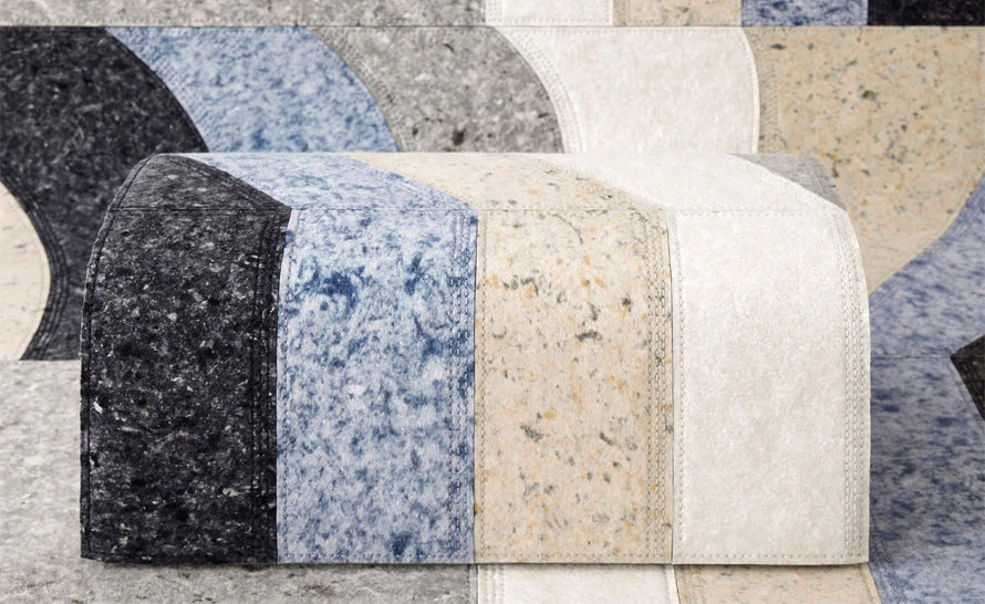 The Pouf from the Nuances collection, a large seat with which you can add surprising three-dimensionality to the rugs of this series: Line, Round and Curve. The different elements of this collection can be combined with each other to compose dynamic and sinuous landscapes that acquire volume thanks to the poufs, transmitting an apparent sense of continuity. Made with a special type of felt developed by the Patricia Urquiola and GAN, its surface simulates a stone texture reminiscent of granite.