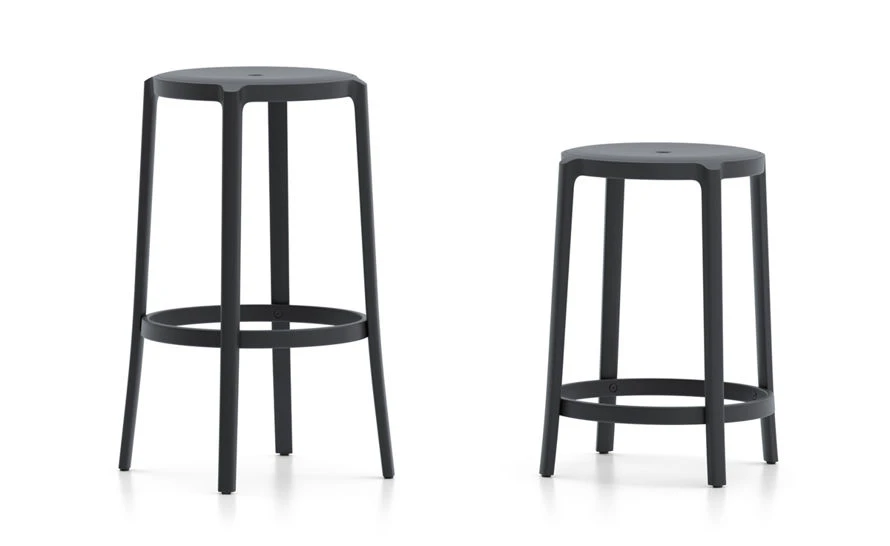 Emeco and Barber & Osgerby introduce “On & On”, a collection of chairs and stools that break new ground, combining longevity of design, durability, and the use of recycled materials that can be recycled again – on and on. The collection of chairs and stools that are physically and visually lightweight, yet extremely strong and durable, making them suitable for both demanding commercial environments and domestic use, indoors and out.