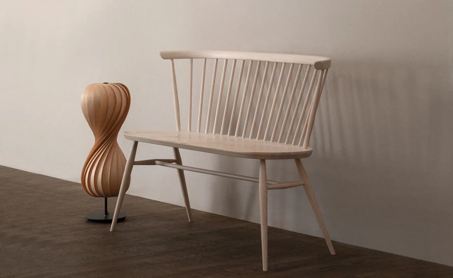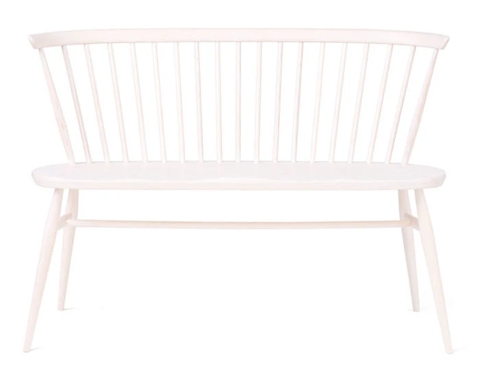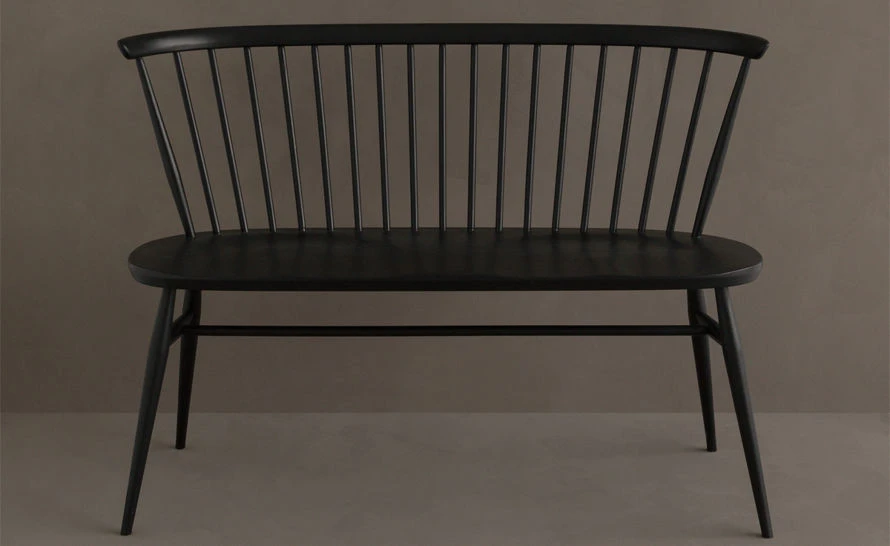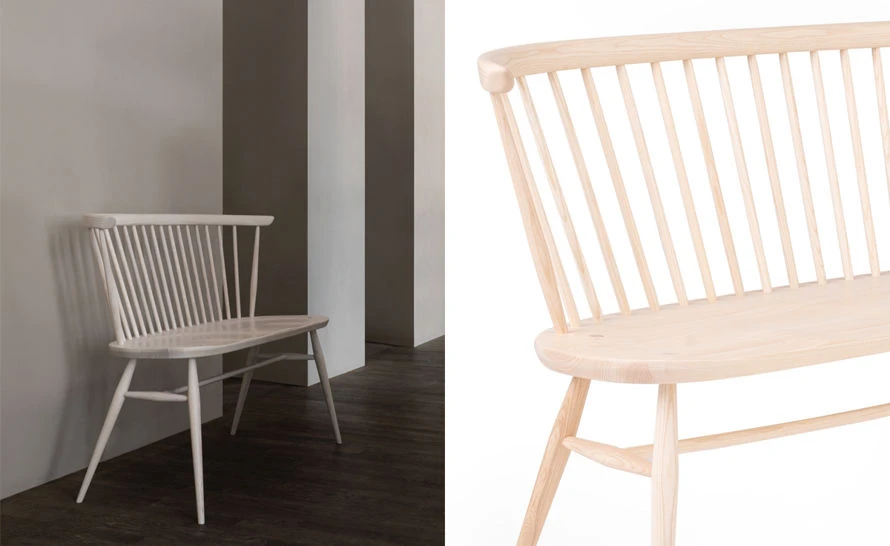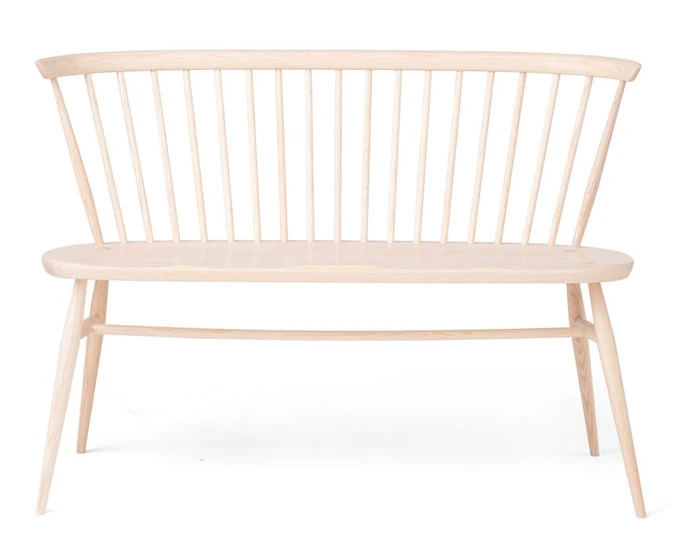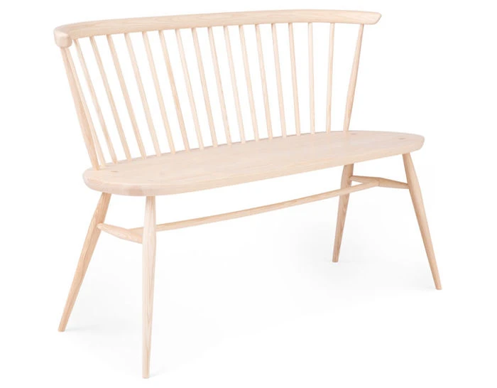As a progression of the Windsor chair, this love seat offers a large, outward shaped ash seat, molded for comfort. The bent solid ash chair bow is an attractive and unique shape, reminiscent of its Windsor heritage. Turned lists that structure the back of this seat for two, and tapered legs give this piece a distinctive Ercol feel. Coupled with the plank table or used as a standalone piece, this unique love seat will be the focus of your living space.