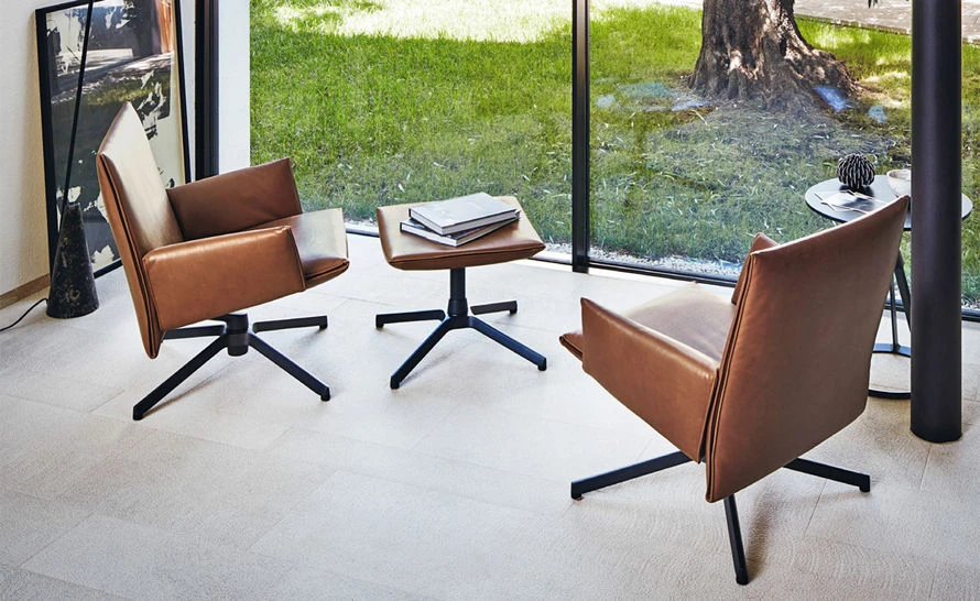 Pilot is an innovative swivel lounge chair that marries visual and material lightness with exceptional comfort. The cantilevered seat, which features a unique upholstery substructure for greater flexibility, appears to float in the air, giving the chair a refined silhouette and an essential, timeless appeal.