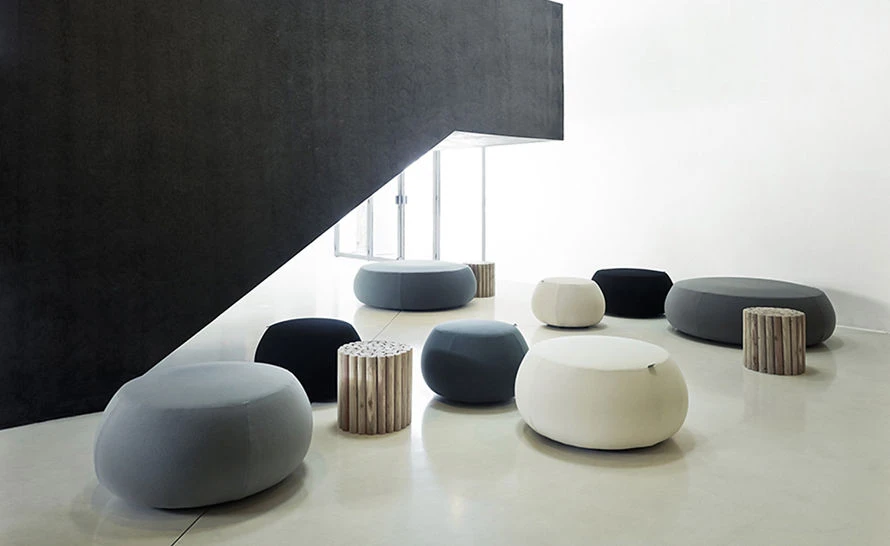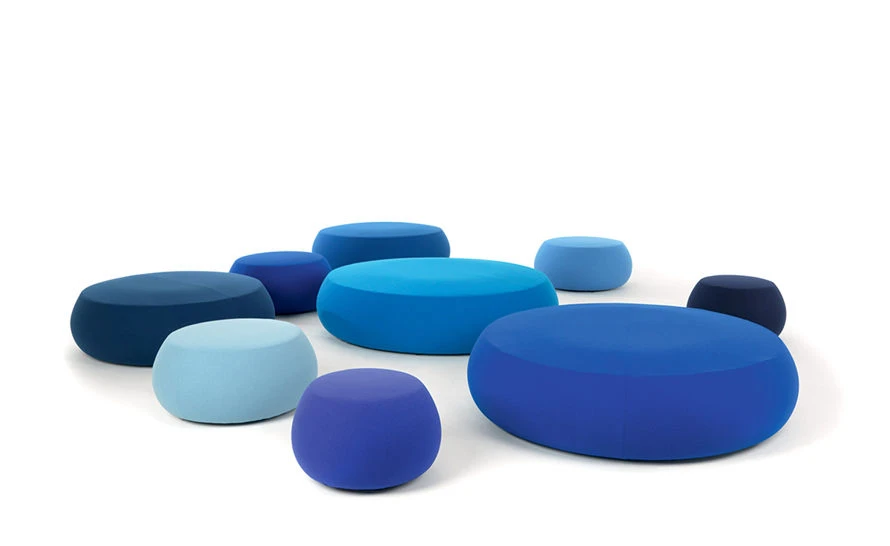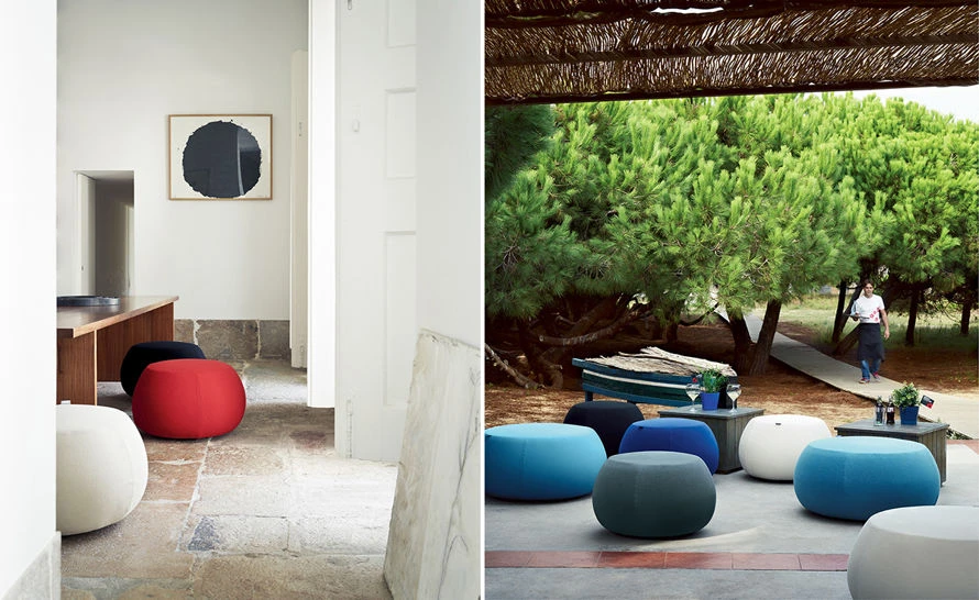 Graphic silhouette and color define the soft, generous volumes of Pix. A family of ottomans, at once inviting and iconic, Pix provides a casual touch of comfort in both contract and residential environments, inside or outside. Small one-seat and large one, three- and five-seat sizes are available in a range of fabrics and colors.