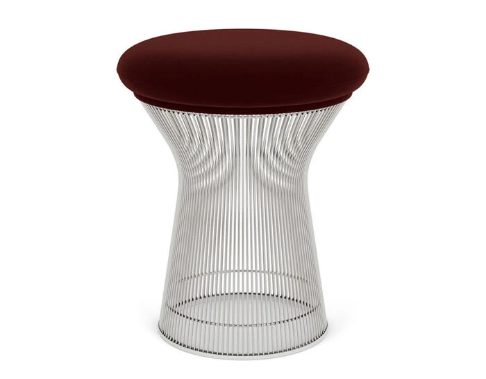 In the 1960s, Warren Platner transformed steel wire into a sculptural furniture collection, creating what is now considered a design icon of the modern era. The Platner collection’s unique harmonious forms are produced by welding steel wire rods to circular frames, producing a moire effect and capturing the decorative, gentle, graceful quality that Platner sought to achieve. All metal components are finished in bright nickel with a clear lacquer protective coating. The Platner collection also includes a side chair, lounge chair, plus dining side and coffee tables.