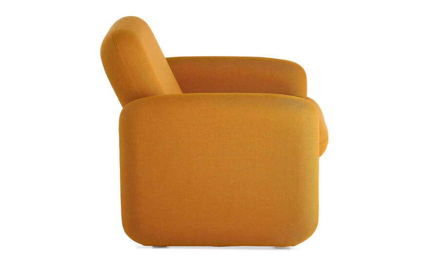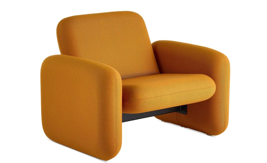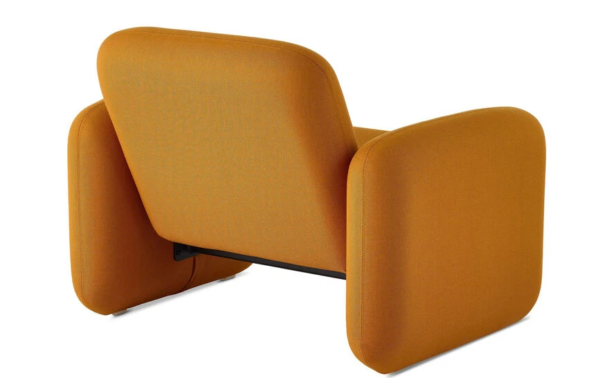 Dubbed “Chiclet” due to its rounded-edge cushions that look like the classic gum. Steel brackets joining the seat and back allow for independent flex that provides a surprising level of individual comfort. Available in configurations from 1 to 3-seater. The geometry of the 105-degree angle of the seat and back provides a perfect pocket for comfortable sitting.