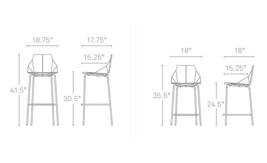 counter height: 36″ h | 18″ w | 18″ d | seat: 25″ h