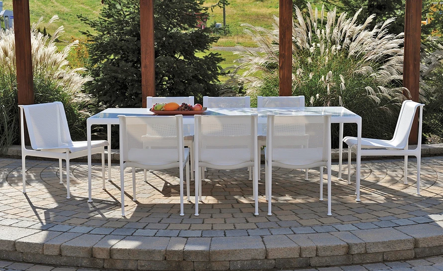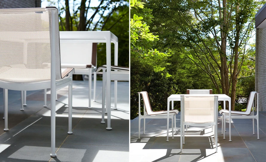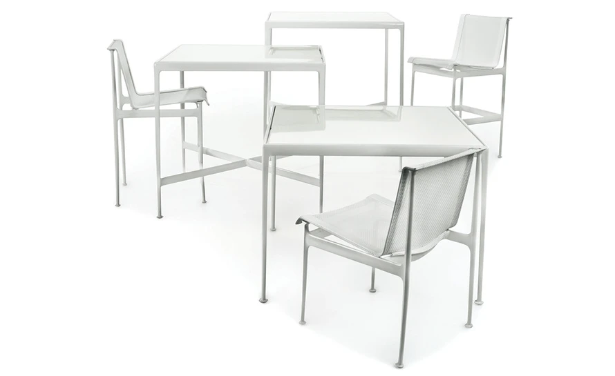 Schultz designed this collection in 1966 at the request of Florence Knoll, who wanted well-designed outdoor furnishings that would withstand the corrosive salt air at her home in Florida. Through the years, the 1966 Collection has earned a special place in the world of outdoor furniture and is considered a classic design for the garden. The 1966 Collection has also been chosen to be included in various museums, including the Permanent Design Collection of the Museum of Modern Art, New York (MoMA). The collection emphasizes exceptional durability and has been re-engineered to incorporate the best modern materials, including Teflon thread, powder coat paint and stainless steel.