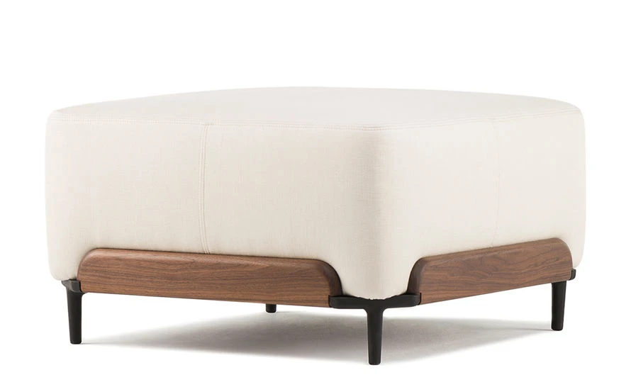 Gemstones set into jewellery were the starting point for Steve – a series of upholstered poufs for Luca Nichetto’s eponymous furniture collection for De La Espada. The Steve poufs feature short cast iron legs that support visible wooden structures crowned with upholstery, and are available in two sizes. Perfect as a stand alone piece, Steve can also complement the Blanche, Stanley and Elysia chairs. It continues the aim of the Nichetto Collection to combine heritage styling with contemporary design.