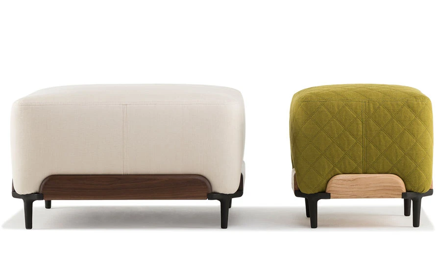 Gemstones set into jewellery were the starting point for Steve – a series of upholstered poufs for Luca Nichetto’s eponymous furniture collection for De La Espada. The Steve poufs feature short cast iron legs that support visible wooden structures crowned with upholstery, and are available in two sizes. Perfect as a stand alone piece, Steve can also complement the Blanche, Stanley and Elysia chairs. It continues the aim of the Nichetto Collection to combine heritage styling with contemporary design.