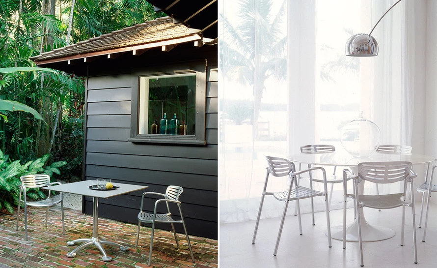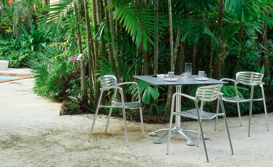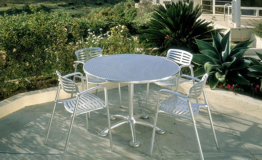 With proper preventative maintenance, the Toledo chair without seat cushion is appropriate for outdoor environments. Aluminum will not reflect extreme outdoor temperatures.