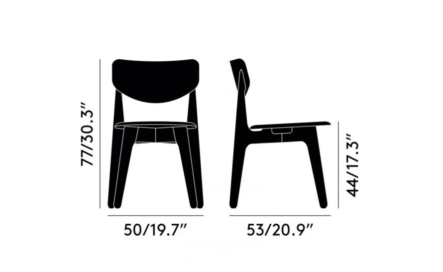 Humble but with personality, modern yet looking like it had always existed, familiar yet unique – and on top of that stacking and comfortable. Also available with an upholstered seat.