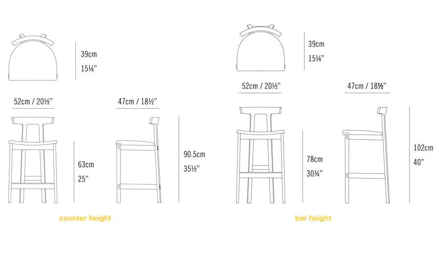 The Torii stool is an addition of the Torii chair collection, available in Bar and Counter height. Like the chair, the design is simple yet sophisticated and defined by its characteristic arched backrest. Its minimal appearance and simple construction hide a surprising amount of comfort and sturdiness.