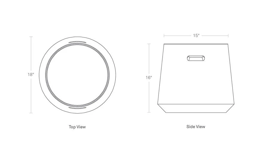 Turn stool: 16″ h | top: 15″ dia. | base: 18″ dia.