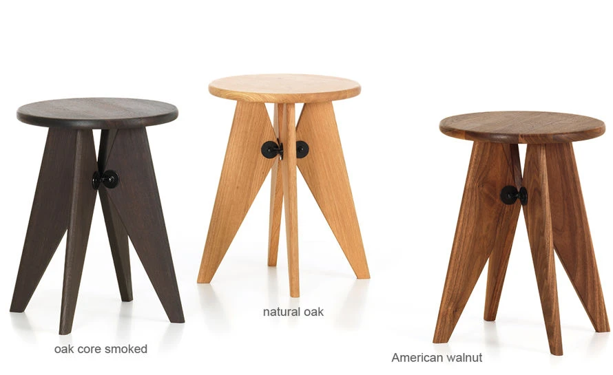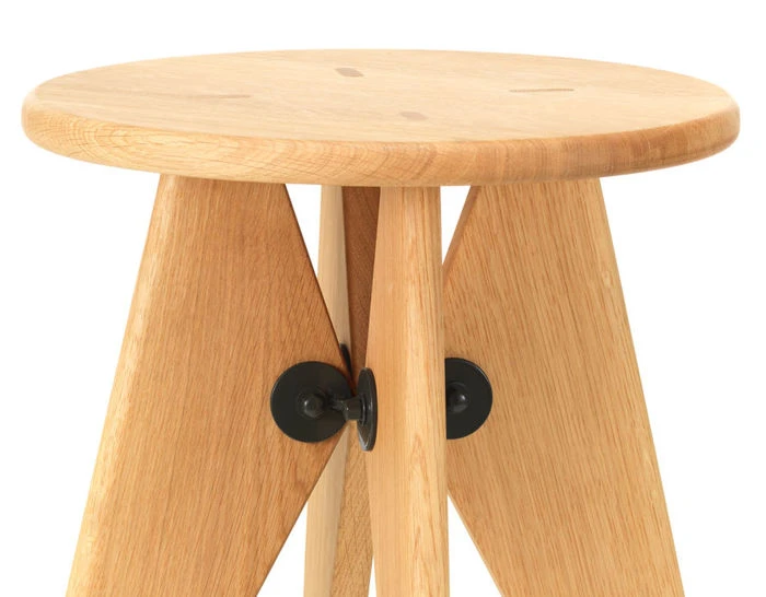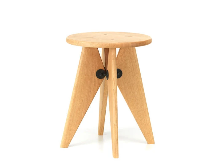 Tabouret Solvay is a simple, robust stool made of solid wood that reveals the designer’s signature at first glance: its clear structural principles can be found throughout the work of Jean Prouvé. Thanks to the flat, even surface of the seat, Tabouret Solvay can also be used as a small side table.